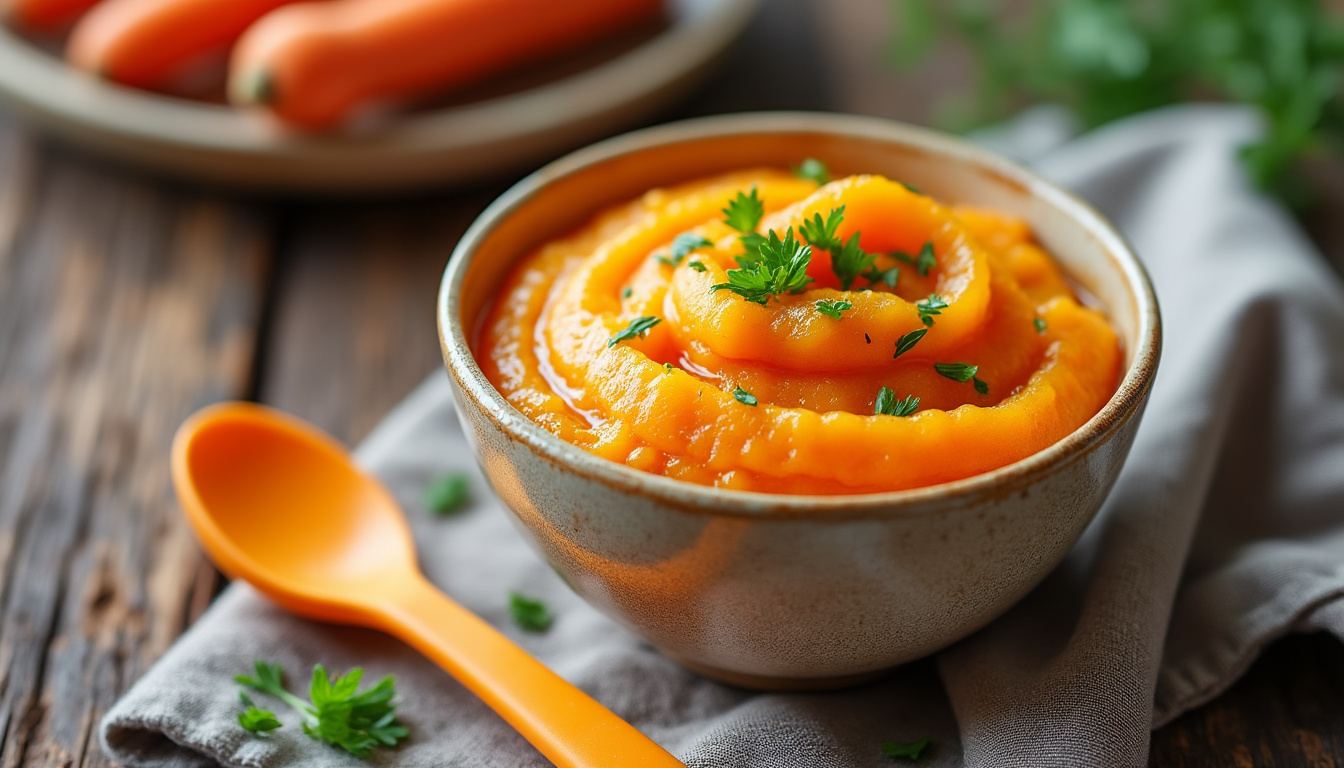 L’intégration du mouliné de carottes aux marrons dans l’alimentation des bébés est un moment joyeux à partager. Les jeunes parents peuvent décider de l’introduire à partir de 9 mois, lorsque l’enfant est prêt à explorer des goûts et des textures variés. La douceur du mouliné permet de l’associer à d’autres plats pour un repas équilibré.