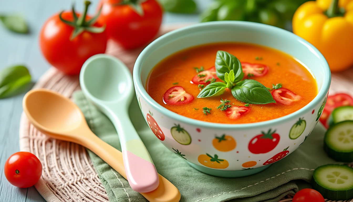 Le gaspacho d’été version bébé est une soupe froide colorée et hydratante, idéale dès 8 mois pour initier les petits aux saveurs méditerranéennes tout en les rafraîchissant lors des journées chaudes.